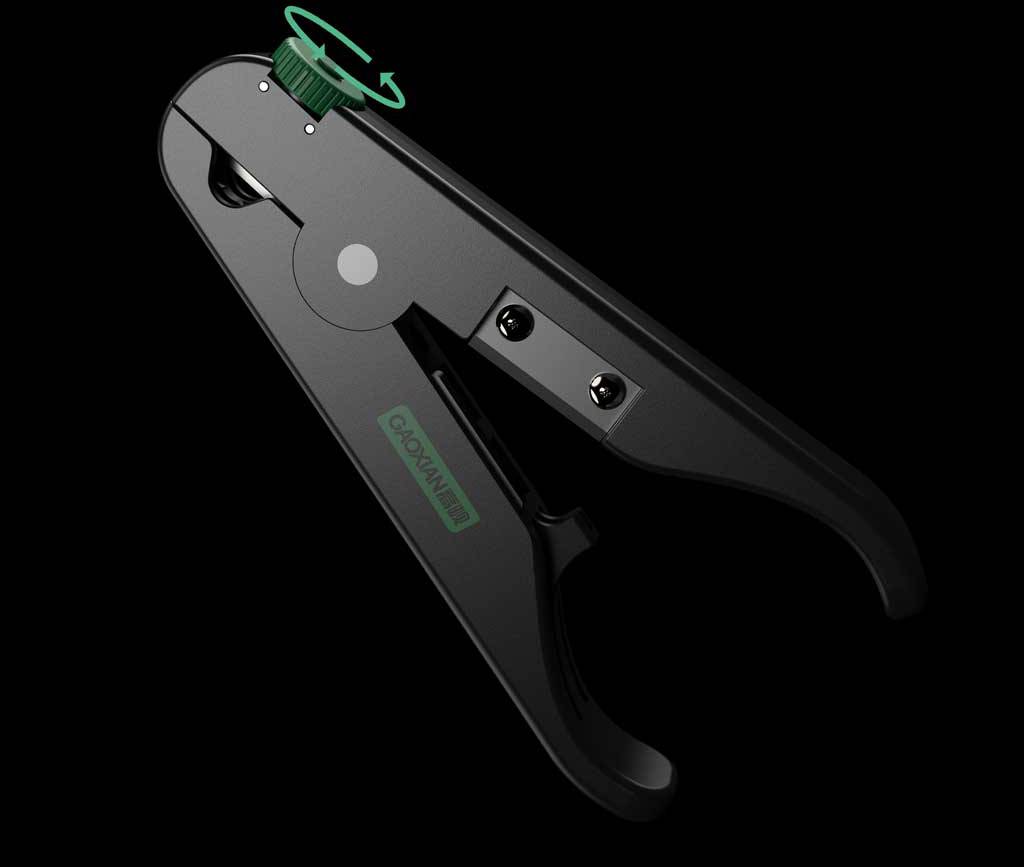 Adjust the knob according to the diameter of the cable, thereby adjusting the depth of the blade in the stripping slot, to strip different cables without damaging the wire core.