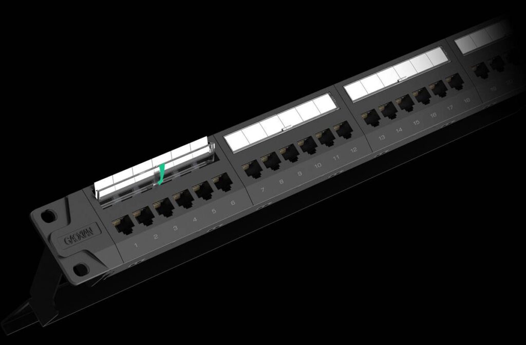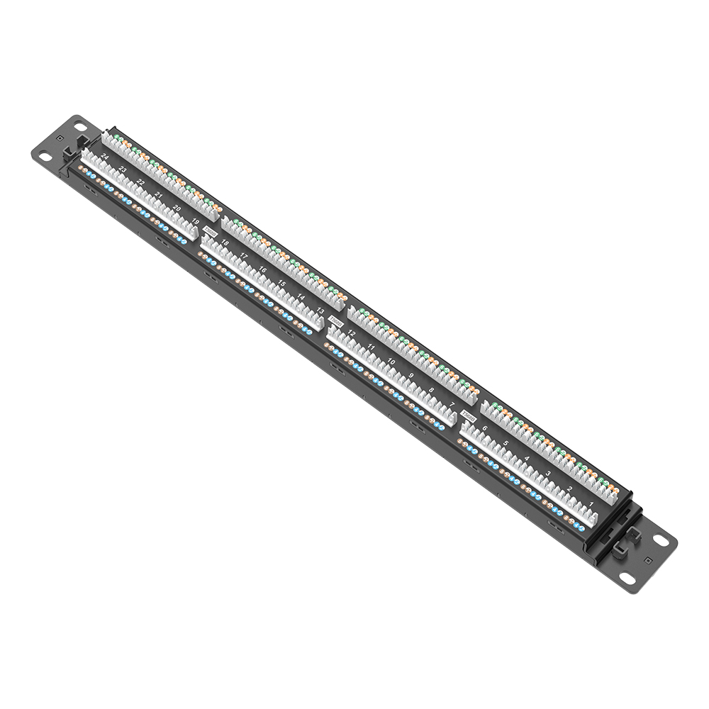 Cat5e UTP patch panel, made of polycabonate/Phosphor bronze/carbon structural steel