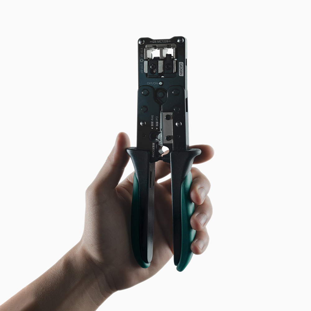 This Versatile Crimping Plier is suitable for network construction and can independently complete the termination of RJ45/RJ11 modular plugs. It can strip the cable sheath, cut the cable, and crimping the shielded plug’s dovetail clip.
