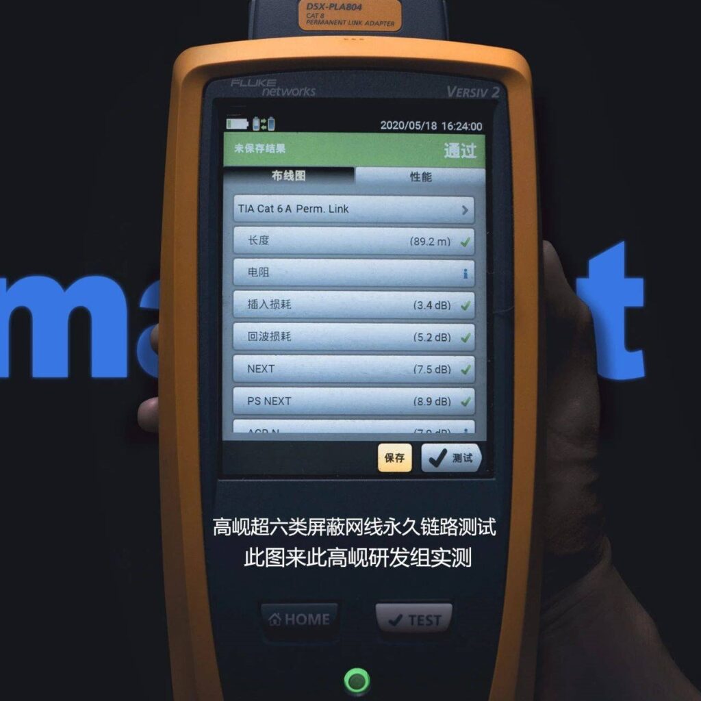 | Fluke Standard | Fluke 90-meter Permanent Link test |